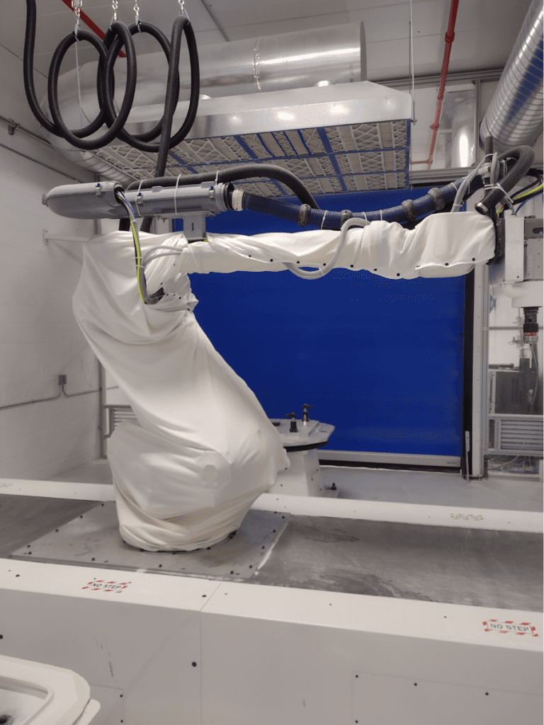 Lightweight, disposable protection systems that shield painting robots, applicators, spray guns etc.. from overspray and particulate contamination. These covers offer a practical, efficient solution for maintaining equipment hygiene and operational readiness without the need for extensive cleaning.